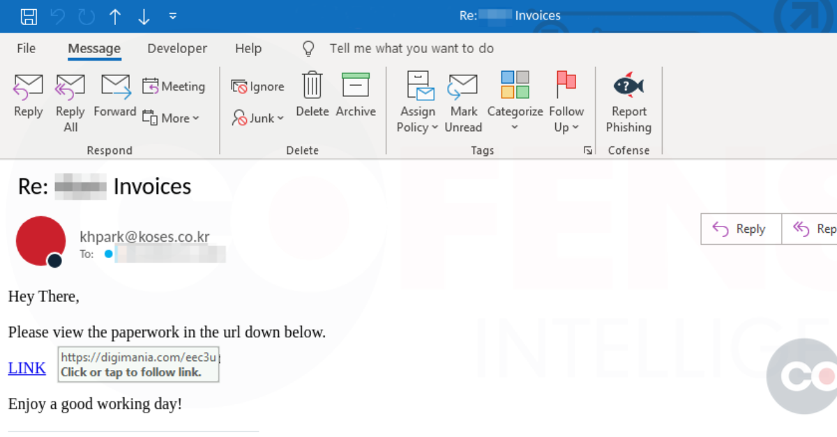 Figure 5: Phishing campaign utilizing an abused legitimate hosting provider to host Remcos RAT.